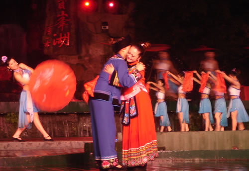 姑娘出嫁,為女人一生中最大的喜事,本應(yīng)充滿幸福、歡樂的氣氛。然而,舊時(shí)湘西、湘南、鄂西、川西(成都等地)、黔東(銅仁、凱里一帶)諸地,卻流行著一種與之完全相反情調(diào)的古老婚俗——“哭嫁”。也就是在姑娘“出閣”之前,不但新娘本人哭得很傷心,像淚人一般;而且,新娘的母親、姐妹以及姑媽、姨媽、舅媽及其他交往較多的女友,都要陪著新娘哭。湘西土家族哭嫁的風(fēng)俗尤為普遍、濃厚,不但哭嫁的時(shí)間較長(少則十來天,多達(dá)個(gè)把月),而且哭嫁歌也保存得古樸、完整。 姑娘出嫁為什么要哭?哪有那么多的東西可哭?這是一種蘊(yùn)含甚為豐厚的人生禮俗,也是一種饒有興趣的婚俗事象。 俗話悅:“人不傷心不落淚!惫媚锍黾拗砸蓿且?yàn)樵谂f式婚姻制度下,女孩(尤其是勞苦大眾家庭的女孩)總是作為犧牲品“拋”(賣)給夫家的,她們的身心受到極大傷害。因此,湘西等地的女孩在出嫁之前要哭泣,要呼號(hào),哭嫁歌就是感情發(fā)泄的最好表現(xiàn)方式。 哭嫁的源起 哭嫁的風(fēng)俗,不知道起源于什么時(shí)候。戰(zhàn)國時(shí)期,趙國的公主嫁到燕國去作王后,她的母親趙太后在臨別時(shí)"持其踵,為之泣,祝曰,必勿使返。"大約就是后來長盛不衰的哭嫁風(fēng)俗的濫觴了。 這種風(fēng)俗,直至清末還盛行于四川農(nóng)村中,隨地區(qū)變化而大同小異。解放前,聽老人們說,早些時(shí)候,沒有嫁而不哭的人家。如果出現(xiàn)嫁而不哭的姑娘,也會(huì)被鄰里看作沒有教養(yǎng)的人,傳為笑柄;相傳有出嫁姑娘不哭而遭母親責(zé)打的事,這位母親當(dāng)然算得上是入流導(dǎo)演了。 舊時(shí)宣講故事中,有花轎臨門,父親強(qiáng)令哭《迎風(fēng)罵媒歌》的情節(jié),可知哭嫁是有歌詞的,帶有表演性質(zhì),原是用來渲染氣氛,以悲襯喜;不過,因?yàn)榛橐鍪前k的,真哭真罵的也不會(huì)少。 抗日戰(zhàn)爭后期,風(fēng)氣較開,哭嫁之風(fēng)已不盛行,而老人們卻還在津津樂道,哭的方式是,從婚期前一個(gè)月的首日起,入黃昏,姑娘訴哭約一個(gè)小時(shí),其聲嗚嗚。十天以后,她的母親加入"陪哭";又十天以后,她的祖母加入陪哭。這家沒有諸姑姊妹,人們說,如果有的話,也應(yīng)當(dāng)加入陪哭行列的。 哭嫁在川西叫"坐堂"。清代吉道人《味蔗軒隨筆·坐堂詞》云:"婚姻之禮,各省風(fēng)俗不同。然酌禮準(zhǔn)情,各省亦大同小異。凡男家娶婦先賦之詩,謂之'催妝';女家親串頌女之詞,謂之'坐堂'。坐堂者,女當(dāng)喜期將近之先數(shù)夕,其諸姑伯姊,置酒為女祖餞,各述吉祥之詞,以為頌美,女則申己之意以答。女左右更有少女,則隨而嫻習(xí)者也。其詞要多鄙俚,然有音韻凄清,風(fēng)格遒勁,如古歌古謠者。羅江明府蔡,微服巡查鄉(xiāng)里,一日行至某處,值有女子歸,諸娣姒咸以諛詞頌女,女申意以答。忽風(fēng)吹句入耳,詞曰:'鳳凰落在桌子上,哪個(gè)女兒肯離娘'。一字一轉(zhuǎn),音韻凄其,誰謂天籟之鳴,不在愚夫愚婦耶!"云云。吉道人姓周名際唐,成都人。吉道人記得明明白白,可惜他只記了一句哭嫁詞,難窺全貌。好在舊時(shí)坊間叢刻中有《訓(xùn)女哭嫁》一種,可見一斑。這本小書的目錄有《閨聲哭》、《娘訓(xùn)女》、《嫂哭妹》、《哭爹媽》、《哭哥嫂》、《花轎到屋哭》、《哭叔爺》、《哭兄弟》、《哭外公外婆》、《哭舅爺》、《拜香火哭》等等,編次有點(diǎn)凌亂,似乎隨手所記,未經(jīng)文人之手。遙想《詩》十五國風(fēng)未刪之時(shí),大約也不過如此吧! 閨聲哭 娘聽后園鳥雀驚,要聽房中女兒聲。 我娘當(dāng)門苦葛藤,手攀苦葛訴苦情。 我娘苦情苦過了,女兒苦情才起根。 ............ 桔子開花葉子青,陽雀開聲我開聲。 新打銅盆才裝水,新打剪刀兩面青。 娘不開口我開口,娘不開聲我開聲。 當(dāng)門一根木蓮樹,目連樹上掛卷經(jīng)。 一本經(jīng)書背完了,未見我娘來開聲。 虧了我娘睡得穩(wěn),爹媽眼淚貴如金。 哭爹媽 月亮彎彎照華堂,女兒開言叫爹娘。 父母養(yǎng)兒空指望,如似南柯夢(mèng)一場。 一尺五寸把兒養(yǎng),移干就濕苦非常。 ............ 勞心費(fèi)力成虛恍,枉自爹娘苦一場。 哭兄弟 黑漆茶盤烏木頭,姐姐離娘弟不留。 留到姐姐吃你飯,留到姐姐穿你衣。 兄弟當(dāng)家掙家忙,嫁了姐姐買地方。 上頭買齊潼川府,下頭買齊遂寧鄉(xiāng)。 ............ 這個(gè)本子所記是川北的歌詞,以前所見的是川南,吉道人所記的是川西,川東,大約也不會(huì)大異的。遺憾的是,該書所記哭嫁詞雖有"只怨媒人莫良心"等語,卻沒有列出"罵媒專目,大約是怕媒人太難堪了吧! 其實(shí),罵媒是哭嫁中必不可少的節(jié)目,也是最具反抗色彩的哭嫁歌詞。舊社會(huì),婦女無婚姻自由可言,由于"三從四德"的束縛,平時(shí)對(duì)于自己的終身大事幾乎不能置一詞,全由媒人和父母擺布;因此,這登花轎之前的"罵媒",便是難得的發(fā)泄機(jī)會(huì)。這早已反映在戲曲和民間說唱等藝術(shù)之中。 以前,川劇《柳蔭記》有《英臺(tái)罵媒》一折,英臺(tái)罵媒人,言詞激烈,聲色俱厲,充分表現(xiàn)了祝英臺(tái)剛烈的性格和反封建精神。她罵道:"提媒婆,更恨她,胡言亂語嘴喳喳......唯愿你,房屋遭火化,田園水推沙。"但這場戲現(xiàn)在卻被刪掉了,五六十年代還有的,全國第一屆戲曲會(huì)演的