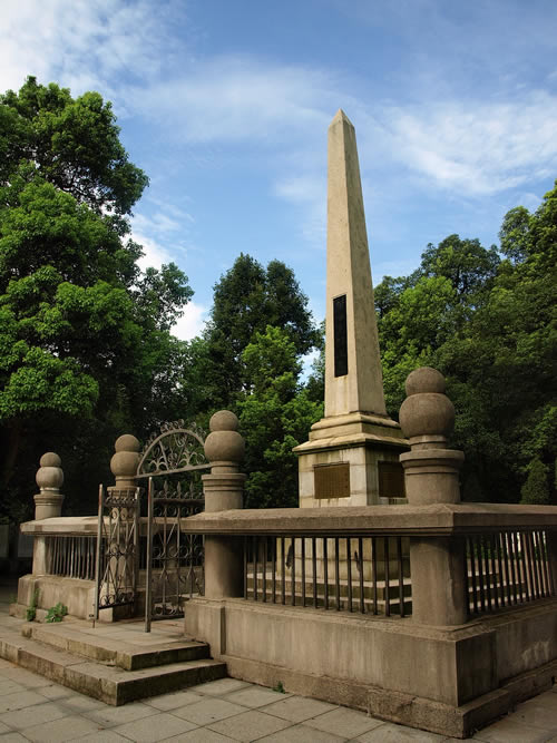 在岳麓山上。墓由三層臺(tái)階百余級(jí)踏步導(dǎo)入,墓碑為一四棱形的整塊4乳白色巖石琢成,全高約10米,因地處岳麓山高峰開闊處,顯得格外聳拔、挺秀、眺望湘江江,長(zhǎng)沙景物盡入眼底。黃光(1874—1916),朱名軫,號(hào)杞園,又號(hào)克強(qiáng),湖南善化(今長(zhǎng)沙)人,辛亥革命重要領(lǐng)導(dǎo)人,史有“孫黃”之稱。1904年組織華興會(huì),翌年8月與孫中山、章太炎等人組織中國同盟會(huì),曾生動(dòng)并領(lǐng)導(dǎo)欽州、廉州(治今廣西合浦)、鎮(zhèn)獻(xiàn)花(今友誼關(guān))、河口、廣州等地區(qū)反清戰(zhàn)役起義,任民軍戰(zhàn)時(shí)總司令。南京臨時(shí)政府成立,任陸軍總長(zhǎng)。袁世凱稱帝后,任討袁軍總司令。1914年赴美醫(yī)病,1916年病重回國,10月31日于上海病故,時(shí)年43歲,次年移柩長(zhǎng)沙,國葬于岳麓山。為全國重點(diǎn)文物保護(hù)單位。