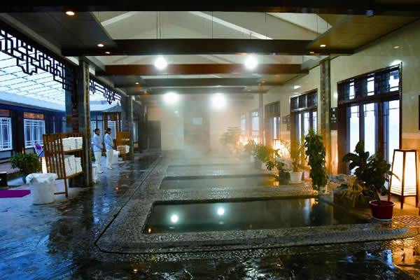 溫泉區(qū)的右方,集中了六個特色小溫池“六福湯”,這里能讓您感受到人參、蘆薈、靈芝、當(dāng)歸、薄荷、艾葉三丫苦六種溫泉的神奇魅力和中醫(yī)藥文化的博大精深。溫泉的理療作用已補(bǔ)越來越多的熱愛健康的人士所接受,能起到舒筋活絡(luò)、強(qiáng)身健體、潤夫養(yǎng)顏、安神、抗衰老等保健作用。隨著人們生活水來的提高的旅游觀念的發(fā)展,溫泉休閑旅游已成為一種時尚。