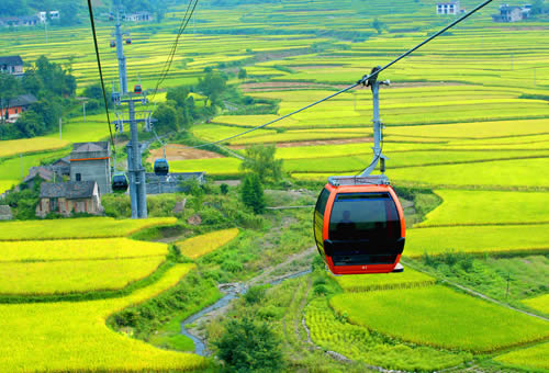天門山索道是世界最長的高山客運索道,位于張家界天門山。共有轎廂98個,索道支架57 個(含3個救護支架),全部采用法國POMA公司原裝進口設(shè)備。索道全長7454米,高差1277米,是國內(nèi)為數(shù)不多高差超過千米的索道之一,其中站到上站之間的局部斜度更高達37度,世界罕見,是國內(nèi)局部斜度最大的索道,同時也是支架最多的索道。