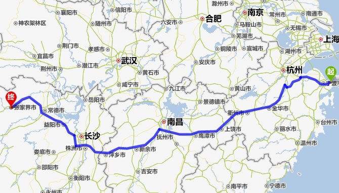 現(xiàn)在位置:張家界旅行社->交通指南->自駕車路線 -> 北侖到張家界旅游自駕車線路,北侖去張家界自己開車要多長(zhǎng)時(shí)間,有多少公里