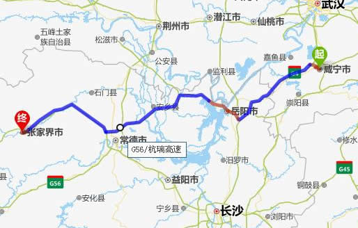 左右,沿途經過咸寧市——岳陽市——安鄉(xiāng)縣——常德市——慈利縣——張家界。