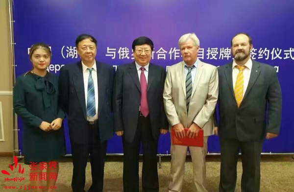 俄羅斯當地時間7月18日下午5時,張家界大成山水國際酒店董事長毛致平與俄羅斯莫斯科國家大馬戲團副團長扎沃龍科夫·謝爾蓋·羅馬諾維奇在烏里揚諾夫斯克市就在張家界投資8億元人民幣建設世界最大的馬戲城項目進行簽約儀式。湖南省委常委、常務副省長陳向群見證了簽約過程。