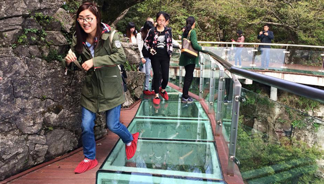 【張家界大峽谷玻璃橋】號稱世界最長、最高的全透明玻璃橋,玻璃橋總長430米、寬6米,橋面距谷底約300米,可站800人。橋面全部采用透明玻璃鋪設,橋中心有全球最高的蹦極臺,整個工程無鋼筋支架,是一種全玻璃結構的橋梁。玻璃橋建成后,將成為世界首座斜拉式高山峽谷玻璃橋;并創(chuàng)下世界最高最長玻璃橋、首次使用新型復合材料建造橋梁等多項世界之最!